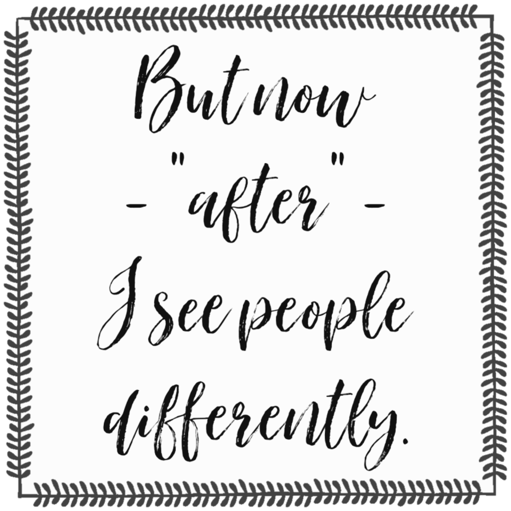 But now – “after” – I see people differently. I see them and I immediately see their loss as well.