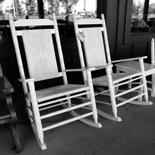 They have all these rocking chairs out front. We used to sit in them sometimes, just rocking and waiting. I guess somewhere in the back of my mind I always thought that we’d have a couple of those on our front porch when we were old. That we’d sit side-by-side, my hair gray and his hair gone, with our glasses and hearing aids and hold hands while we watched the birds and the squirrels and the grandkids run around the yard. Maybe even the great-grandkids if we were lucky.