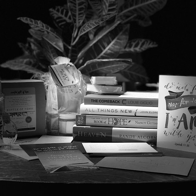 Through my VBS Facebook group, I’ve connected with people from around the world. Strangers from Colorado, Ohio, Florida and Pennsylvania sent gifts through my church. Literally thousands of believers have prayed for our family. The picture below is the contents of a blessing box I received from a fellow young widow who ministers to others by sending out the boxes. I also received other books and a prayer blanket along with scripture cards and very encouraging, hand written notes. All from strangers.